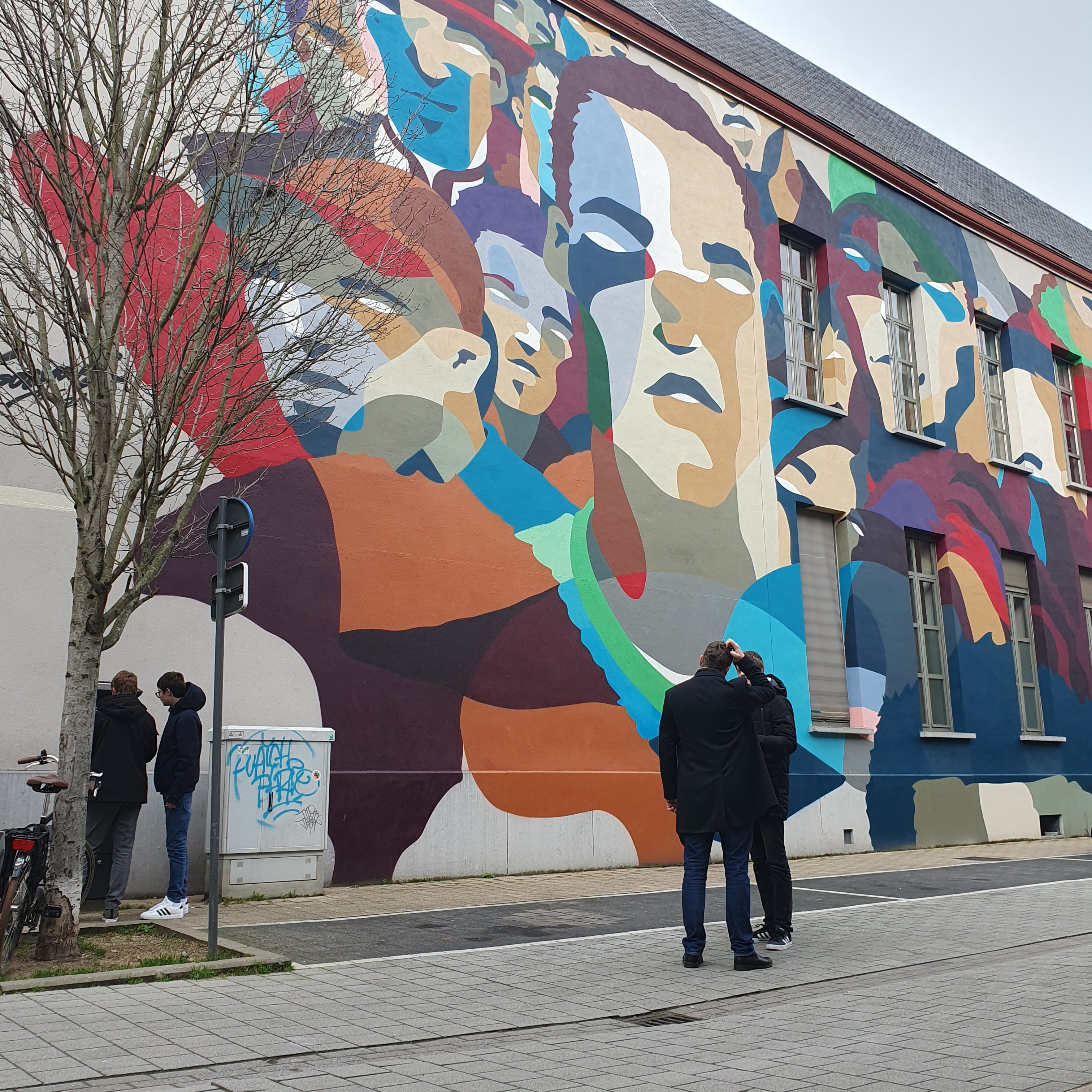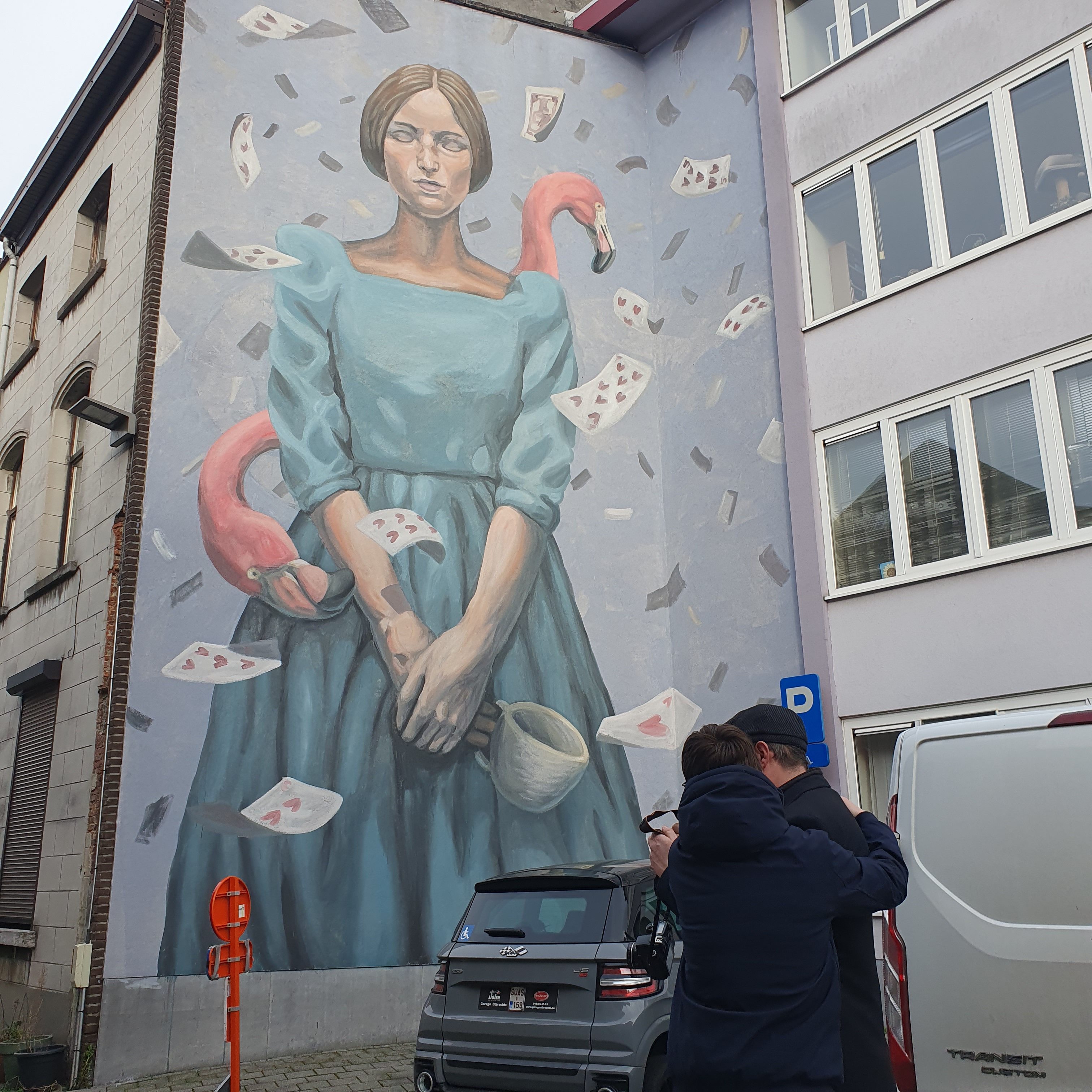 Je zou het misschien niet meteen verwachten van een eeuwenoude stad, maar Mechelen herbergt, naast de indrukwekkende statige gevels van de stadspaleizen, ook een behoorlijke hoeveelheid Street art. Sterker nog, met ‘Mechelen Muurt‘ van stadsartiest Gijs Vanhee zijn er al niet minder dan 18 voorheen kale en saaie gevels opgefleurd met prachtige en verrassend kleurrijke muurschilderingen. Via de app van Visit Mechelen konden we onder ‘stadswandelingen’ een kaart downloaden waarop de locaties van de muurschilderingen te vinden waren. We maakten onze eigen route en gingen op zoek naar de pareltjes van muurschilderingen. Het feit dat deze fresco’s soms op onverwachte plekken te vinden zijn, maakte het alleen maar leuker.