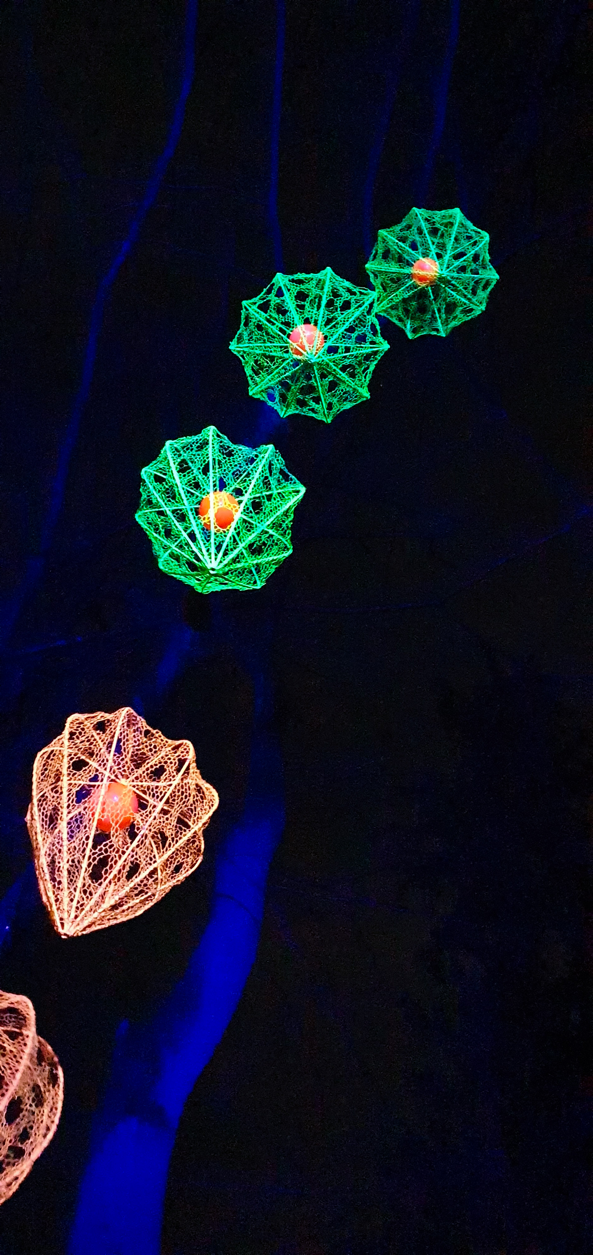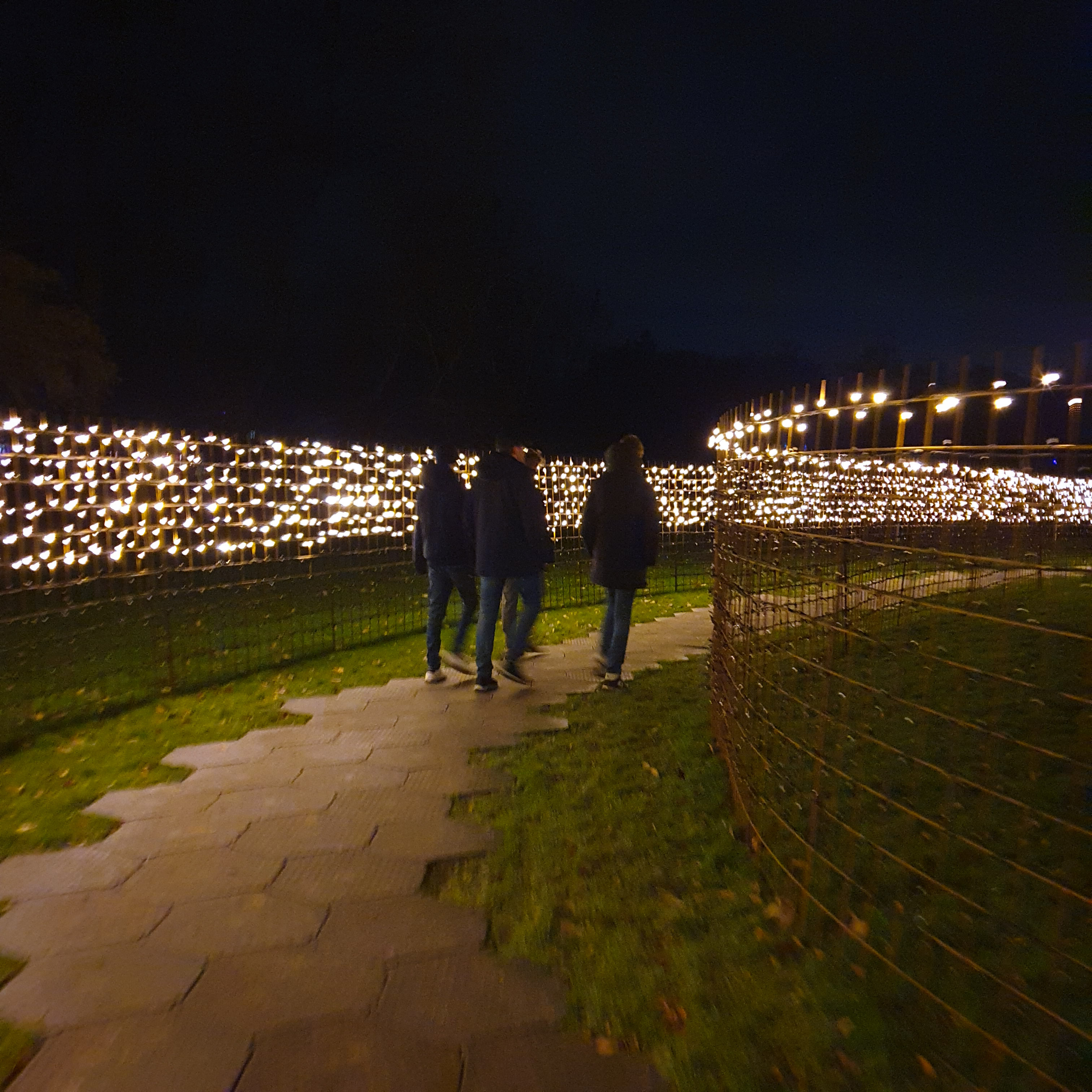 Onderweg maakten we even een tussenstop in de Kawa-bar om te genieten van warme chocolademelk en zelfgemaakte marshmallows. Opgewarmd aan de vuurkorven begonnen we aan het tweede deel van de avond en werden we verrast door de gigantische serre waar we naartoe geleid werden voor enkele andere lichtshows. Echt, woorden schieten tekort om de magie in de halve duisternis te beschrijven – het ziet er in het echt nog zoveel beter uit dan op foto’s.